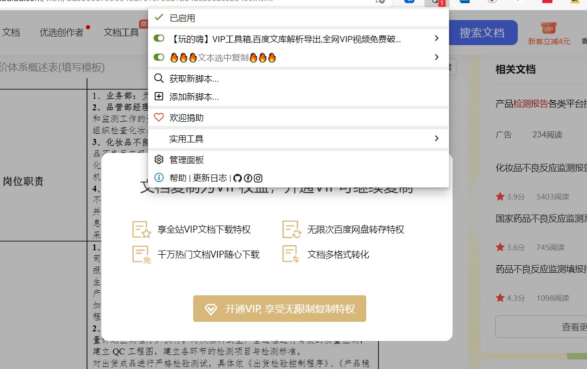 解除网站不允许复制的限制,文本选中后点击复制按钮即可复制,主要用于 百度文库 道客巴巴 腾讯文档 豆丁网 无忧考网 学习啦 蓬勃范文 思否社区 力扣 知乎 语雀 等