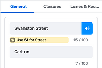This script automatically checks for suffix abbreviations as you edit a segment's street name in the Waze Map Editor. Based on what is entered, it will verify or make suggestions based on Australian mapping standards.