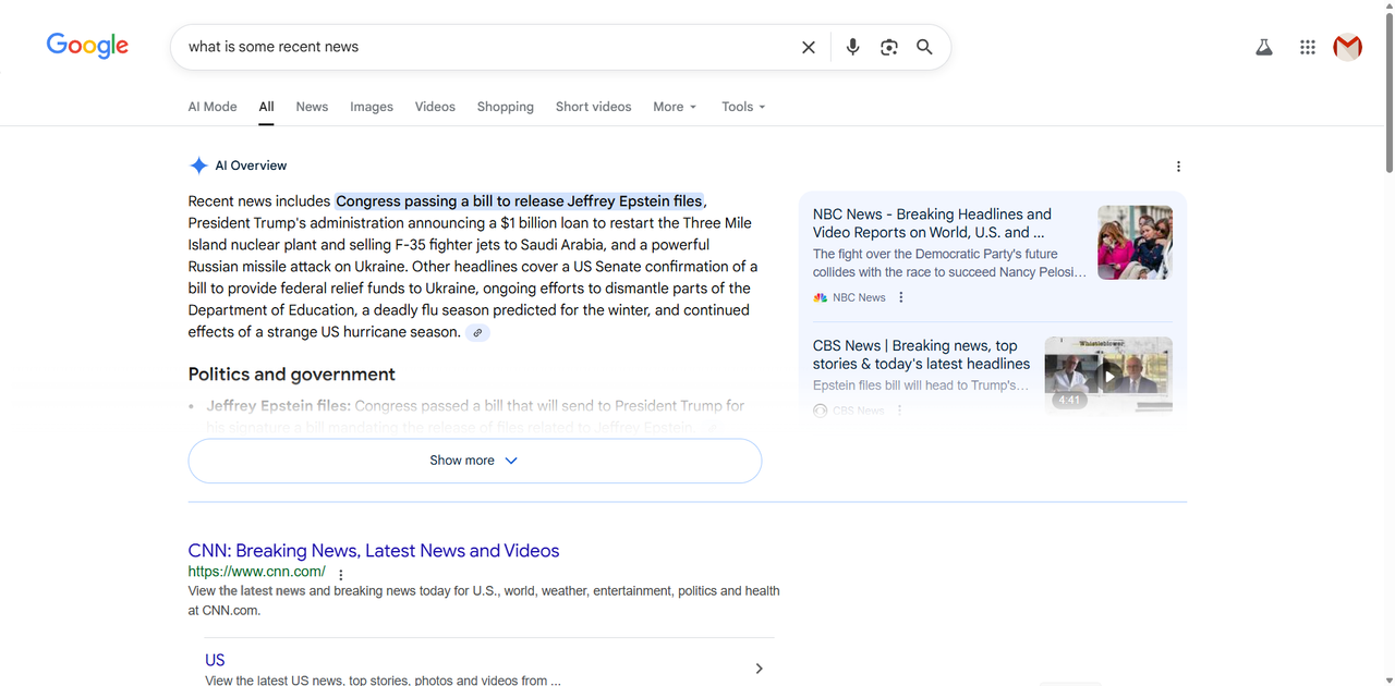 Removes the AI Overview section at the top of Google Search.Also moves the 'AI Mode' tab to the far right so that it is not the very first tab.Before: After: