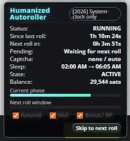 - Use the panel toggles to configure WoF / Bonus / Autoroll.